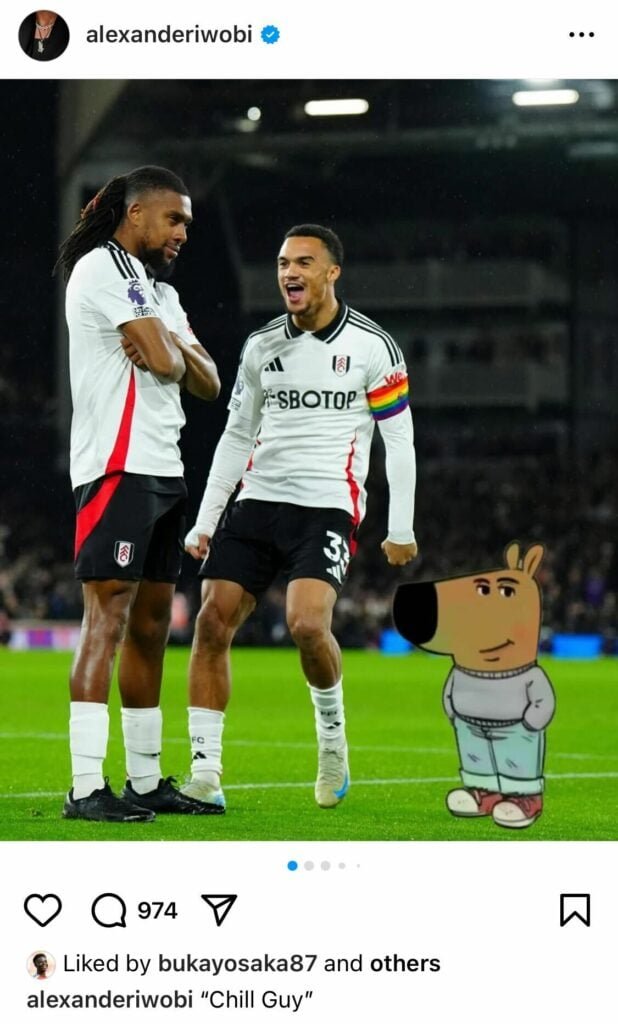 Following the match, Iwobi took to Instagram to celebrate his standout performance and the team’s victory, cleverly referencing the popular “Chill guy” meme in his post. Arsenal’s Saka showed his support by liking the post, highlighting the camaraderie between the two players despite their club rivalries.