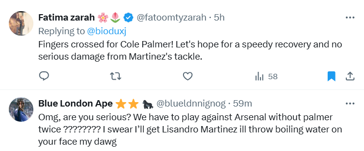 Chelsea supporters are expressing their outrage following a controversial tackle by Manchester United’s Lisandro Martinez on Cole Palmer during Sunday’s match. The incident has left the 22-year-old midfielder nursing an injury, casting doubt on his availability for this weekend’s critical clash against Arsenal.
