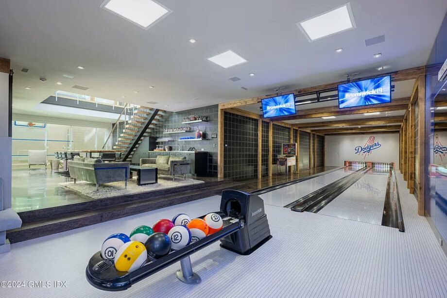 The estate, set on a sprawling 9.5 acres, is designed to impress. Originally constructed in 1937, it boasts six spacious bedrooms and nine luxurious bathrooms. But it’s the sports facilities that truly make this property stand out. Imagine having your very own basketball court, an indoor batting cage, and even a Dodgers-themed bowling alley—all within the comfort of your home.