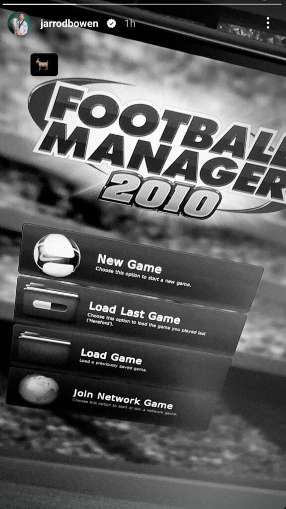 While sidelined, Bowen has taken to social media to share how he is spending his recovery time. Recently, he posted an image on Instagram of the loading screen for the classic game Football Manager 2010, accompanied by a goat emoji. The post has not only given fans a glimpse into his downtime but also sparked conversations about the beloved football simulation game among supporters.