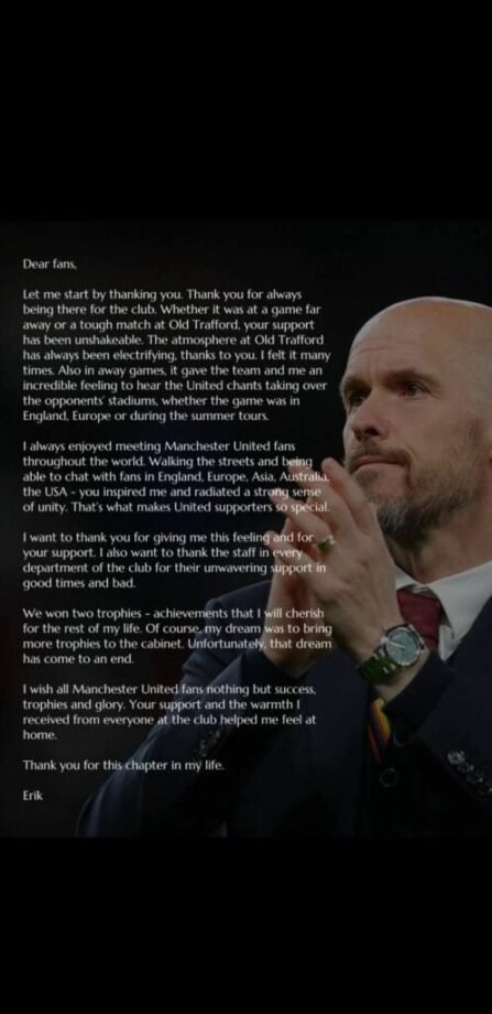 Following his dismissal, Ten Hag took to social media platform X (formerly Twitter) to express his thoughts through his representation, SEG Football. Reports suggest he received a substantial £17 million payout upon his departure.